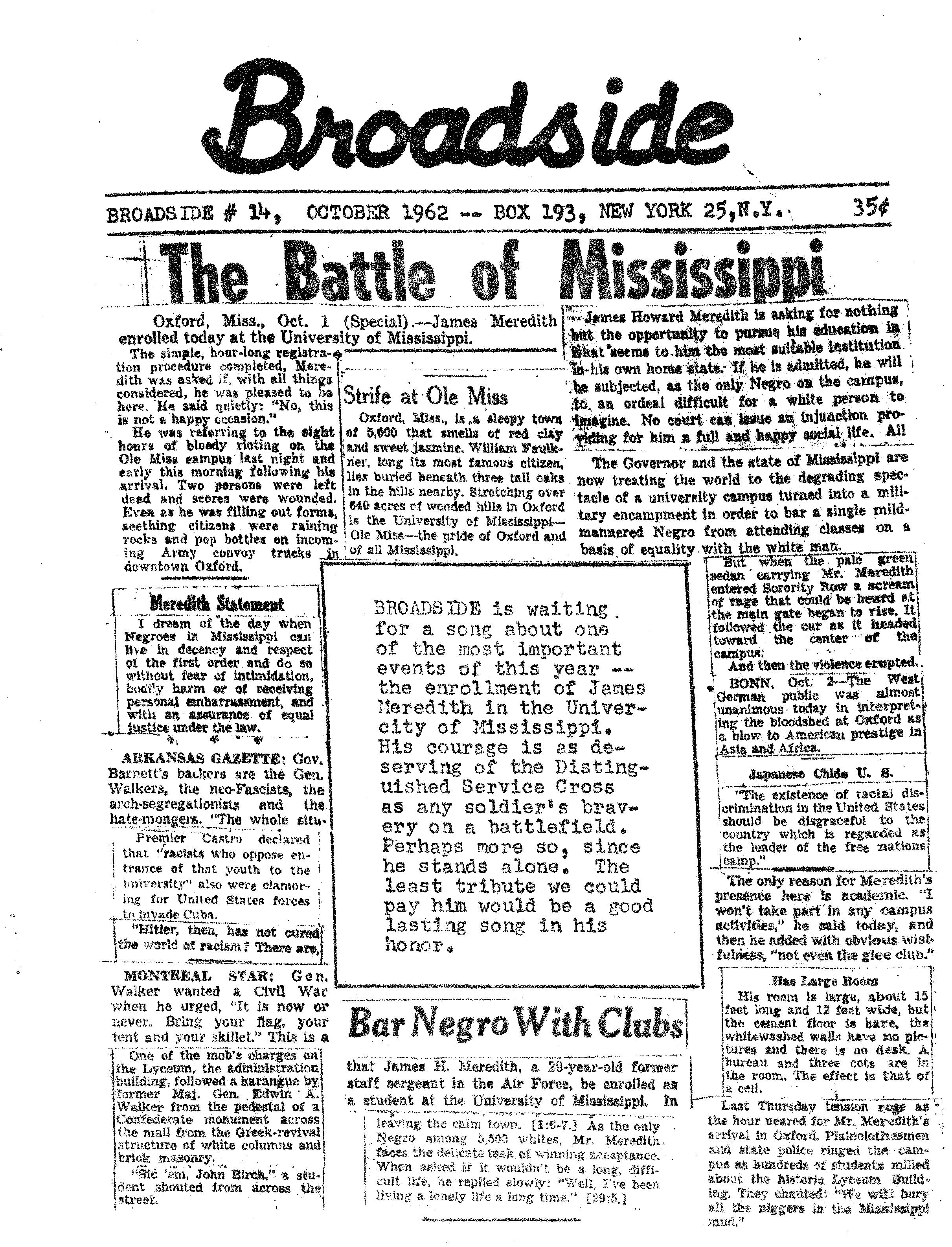 The topical song workshop made its own place as one of the most important events of the Newport Festival. Under Pete Seeger’s agile direction, the definition of topical song was broadened to include songs of specific incidents in a folk’s life. The new generation of young topical songwriters was well represented: Dylan, Peter La Farge, Tom Paxton, and Phil Ochs. There was also the great blues singer, Mississippi John Hurt, whose songs are derived from experiences carrying deep social content.