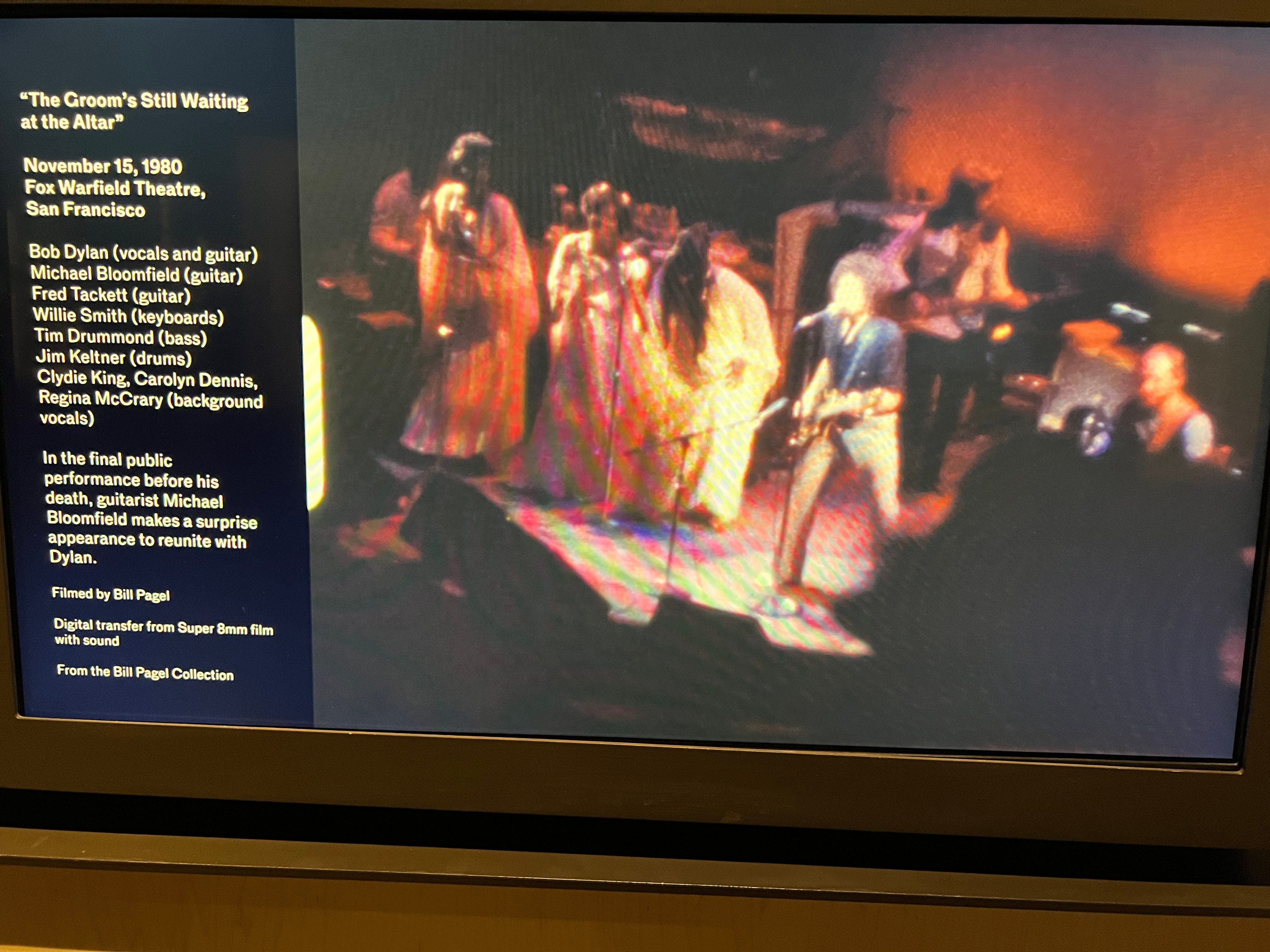 No, no. There is not a room like that. We've scattered live stuff throughout because the story doesn't end with the album. That's why the six songs are set up [a display diving deep into six songs on the main floor]: introducing the song, writing the song, producing the song, but then performing the song. These songs have afterlives. Part of Dylan's journey of restless creativity is the rewriting, rearrangement, and continuing to try and perfect or find the song, or push it into new dimensions of meaning.