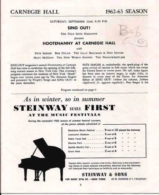 1962-09-22, Carnegie Hall Hootenanny, New York, NY