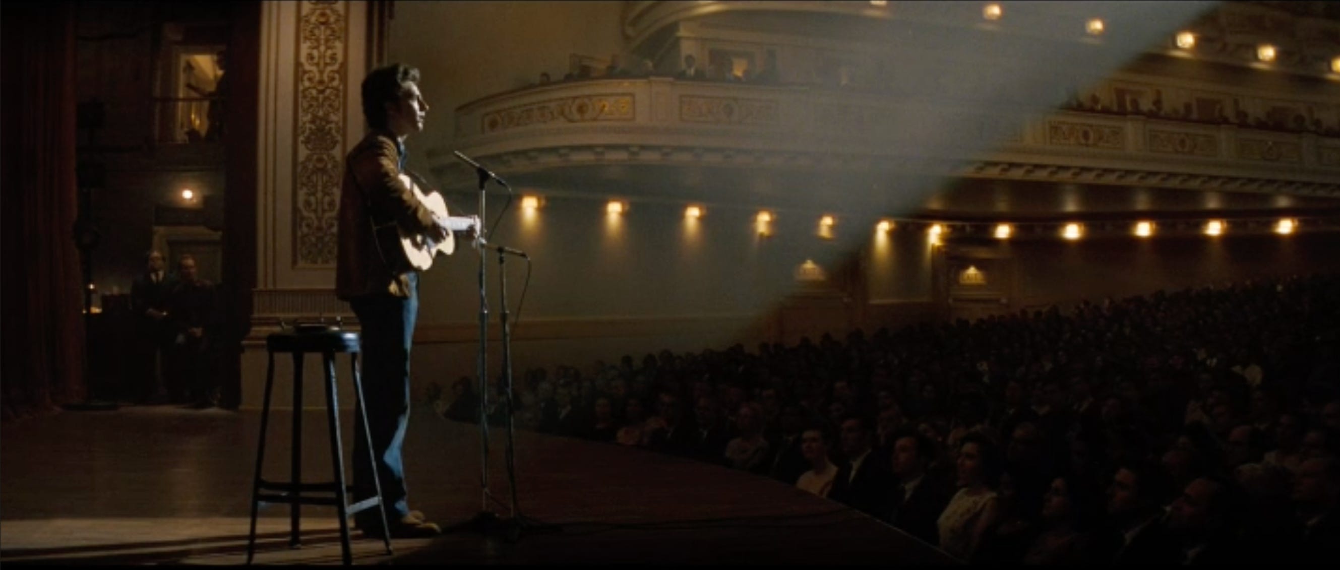 The concert is pictured in A Complete Unknown when Bob performs “A Hard Rain’s a-Gonna Fall” to an audience in suits and ties. “This your dream,” Albert Grossman (Dan Fogler) tells Seeger (Ed Norton) in the film. “Folk music reaching everybody.” Seeger’s reaction is inscrutable.