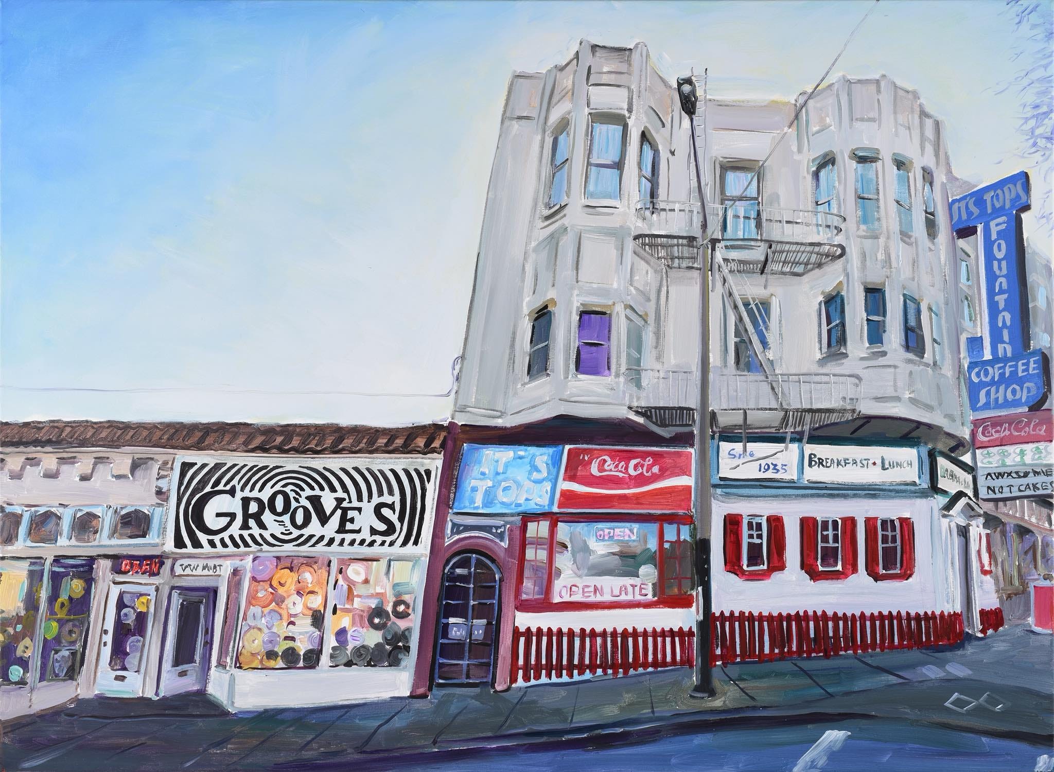 He was also a huge record collector, and later opened a vinyl-only record store here in San Francisco called Grooves, which we still have open. But here’s the interesting thing. We had a customer come into Grooves. They said, “It’s so nice to be in here. I love the Dylan painting of Grooves.” And we’re like, “Wait, what?” “Yeah, I just was in Japan and there was an exhibit of Bob Dylan’s artwork.”