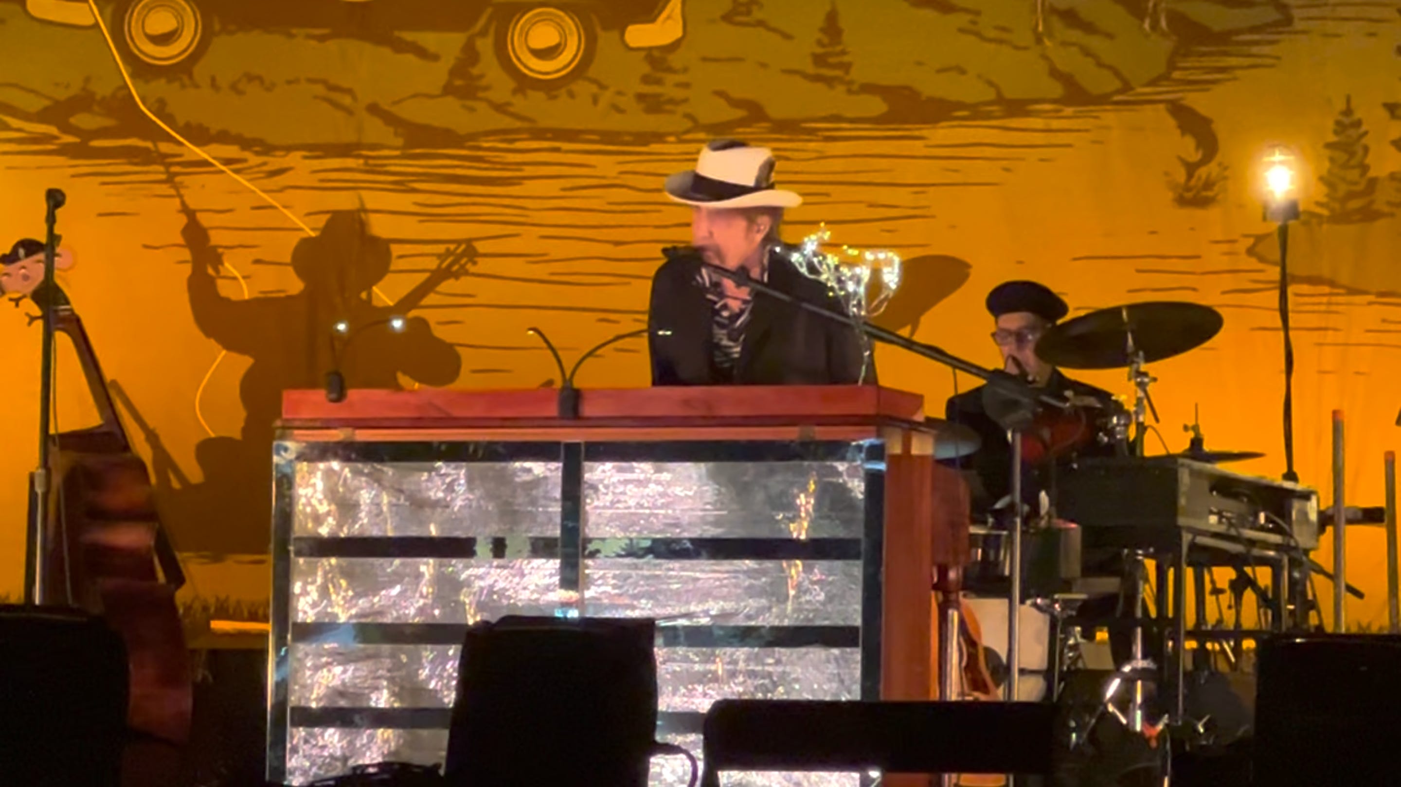 The centerpiece of this set to me is the “All Along the Watchtower” / “Til I Fell in Love with You” combo. “Watchtower” benefits from the wonderful new arrangement, and Bob leans into the vocals, extending the final word of each verse (“hoooooowl,” etc). Then “Til I Fell,” as I mentioned yesterday, has that wonderfully strange backing, the band members making ambient noises behind Bob. I got some video of it last night: