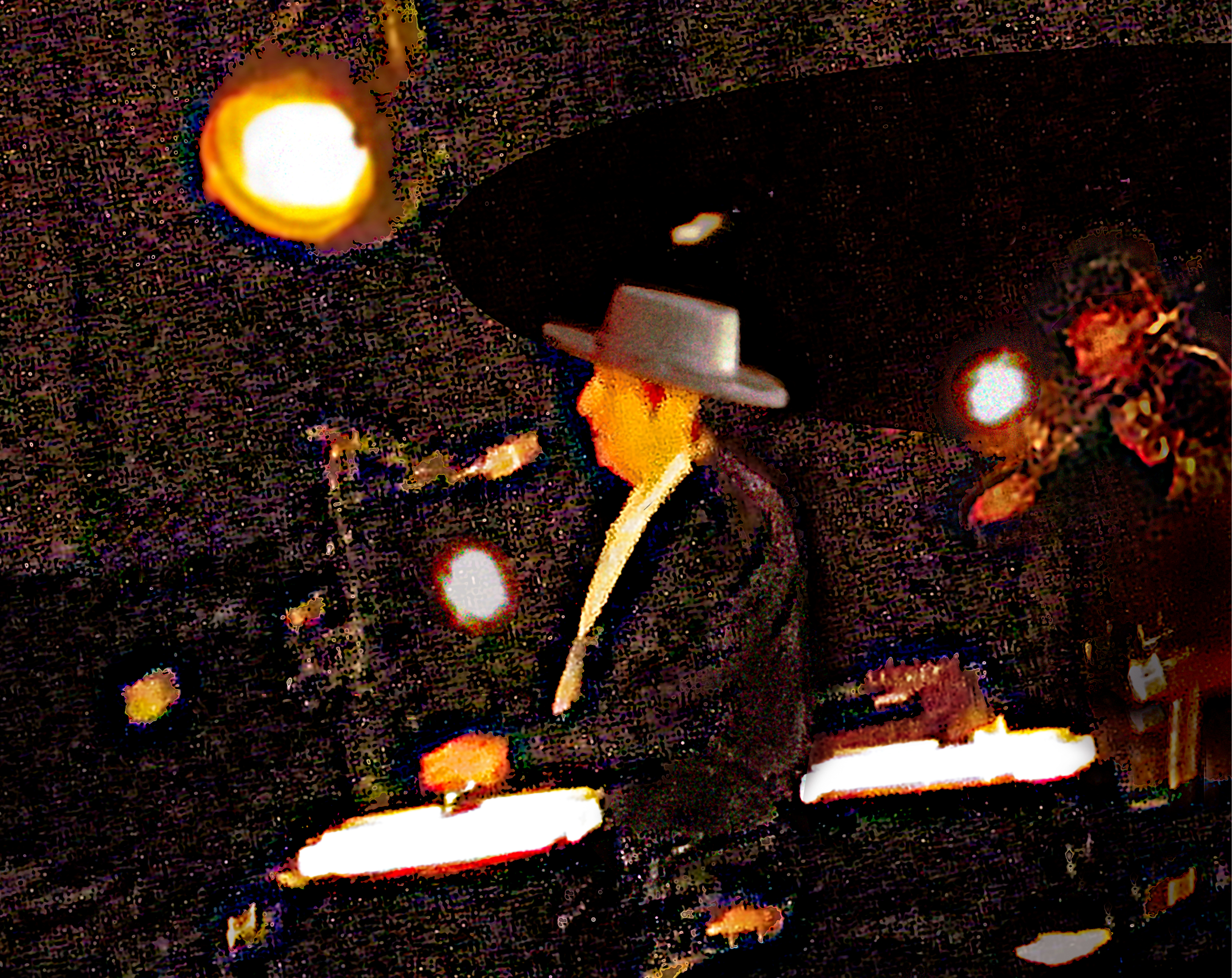 I just had a handheld light meter. If you’re not really close, it was terribly hard to get a good reading. You’ve got a spotlit figure against darkness and the meter gives you a reading from all of that. So I was kind of guessing. I really didn’t know.