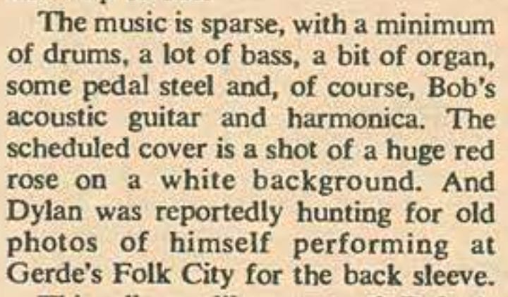 Another great article. Wow, what a thing, to get a letter saying Bob wants to use your photo. For Blood on the Tracks! And then it becomes absolutely iconic.