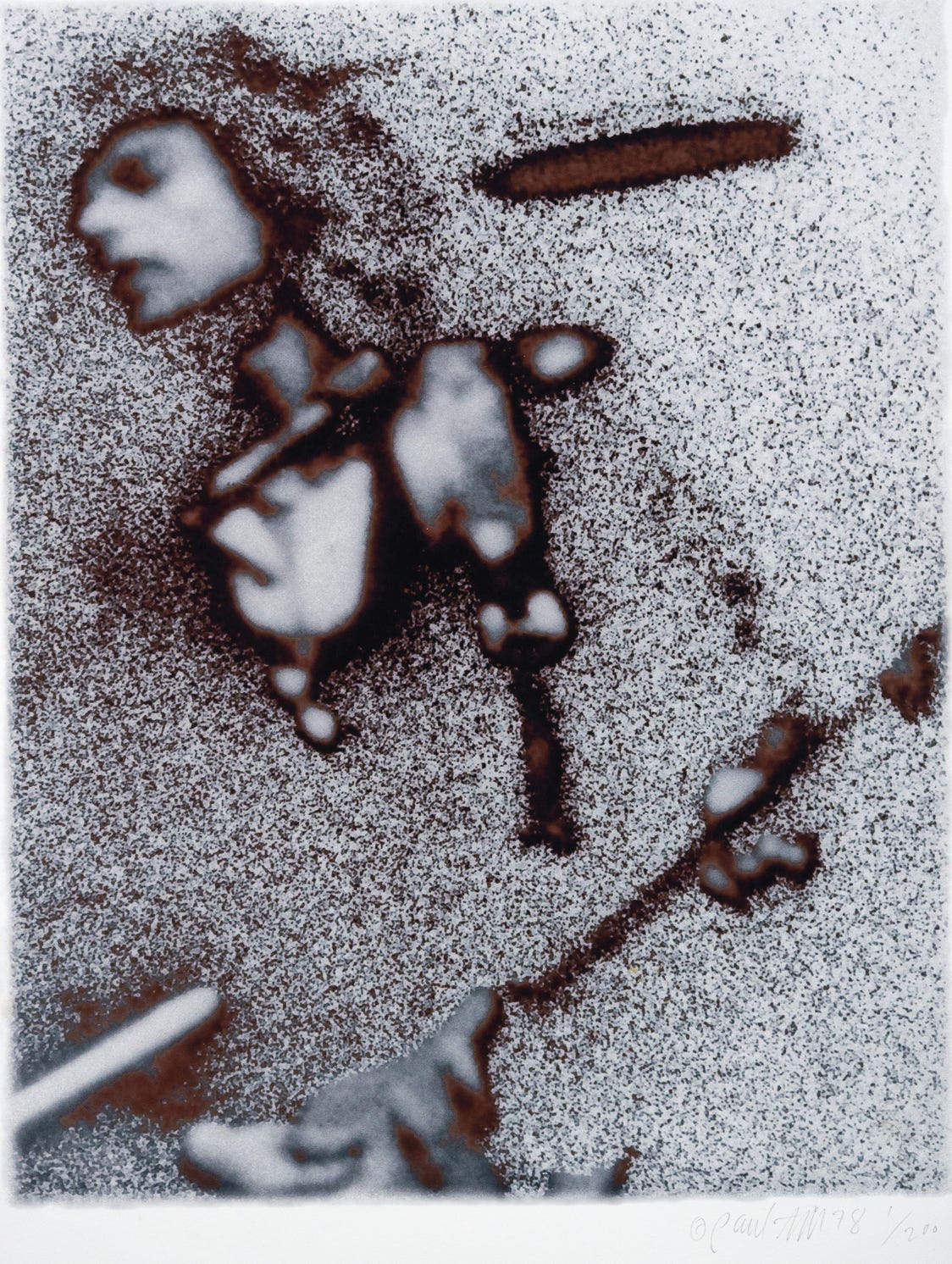 They were all kind of like that. It’s a continuous tone negative. I generate tone separations, which means it’s just black and white. So you can really take any area and make it any tone—darker or lighter. Then you have a bunch of different negatives that are like positive or negative, solarized or not. So, I had all those, and then you put them together in different combinations.