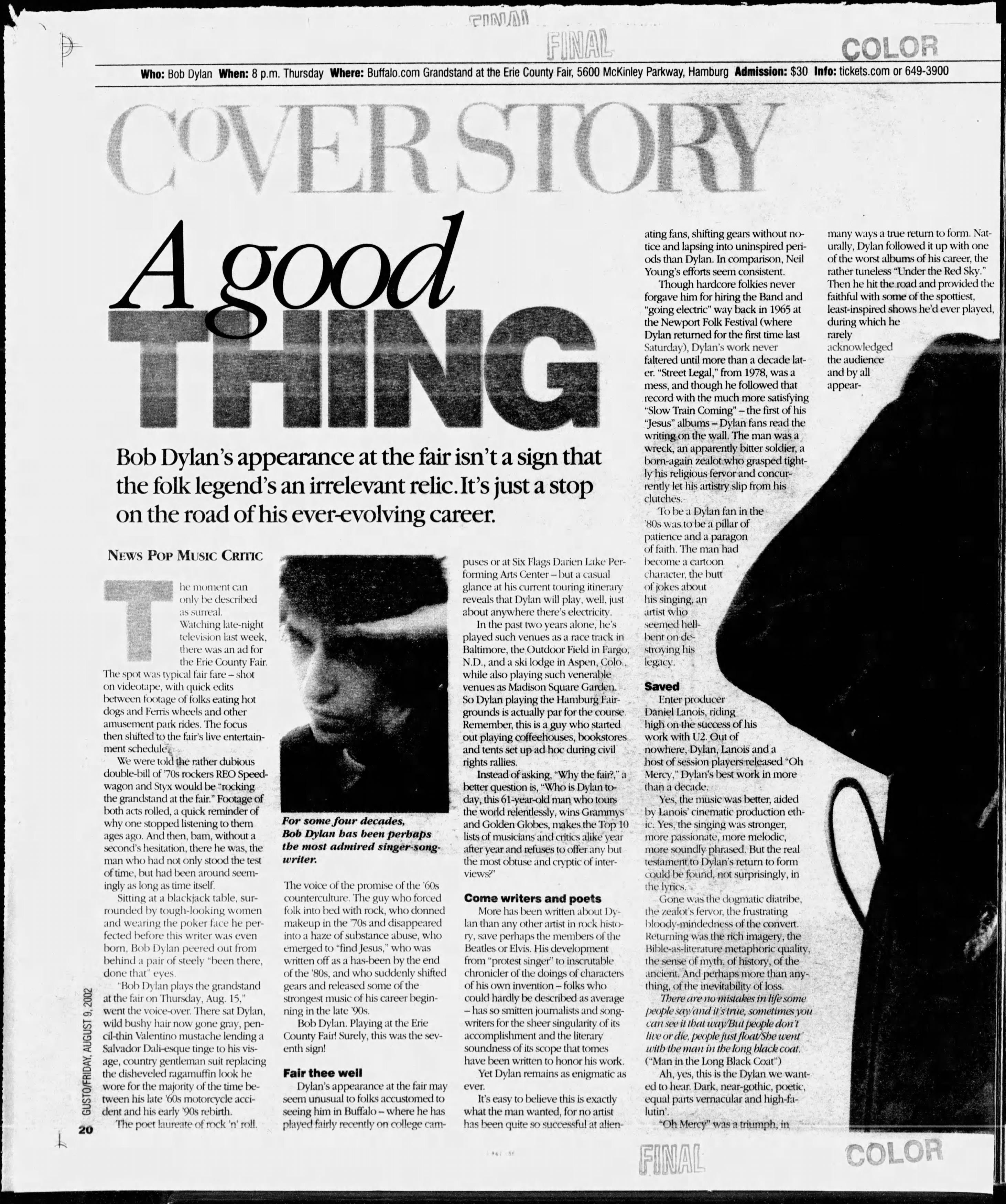 19 years ago today, at the Erie County Fair in Hamburg, NY, Bob Dylan got a new introduction.