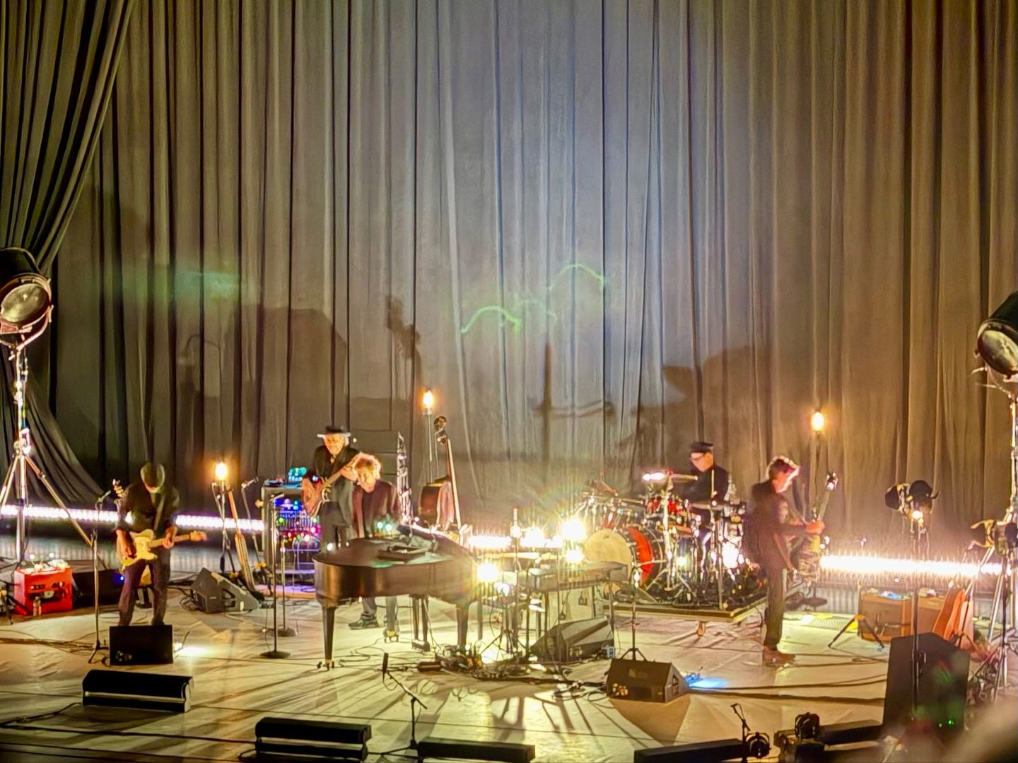 Another novelty came in the way we got our best view of Bob all night. Though the actual man remained largely invisible, he could be best viewed by the huge shadow he cast, which spent the entire night dancing around up along the back curtain of the stage. No other band member was casting such a spectre, just Bob. Now we’re really in the Shadow Kingdom; watching shadows in the night and singing “Shadows dance upon the wall, shadows that seem to know it all” and any other reference you care to remember here as well.